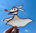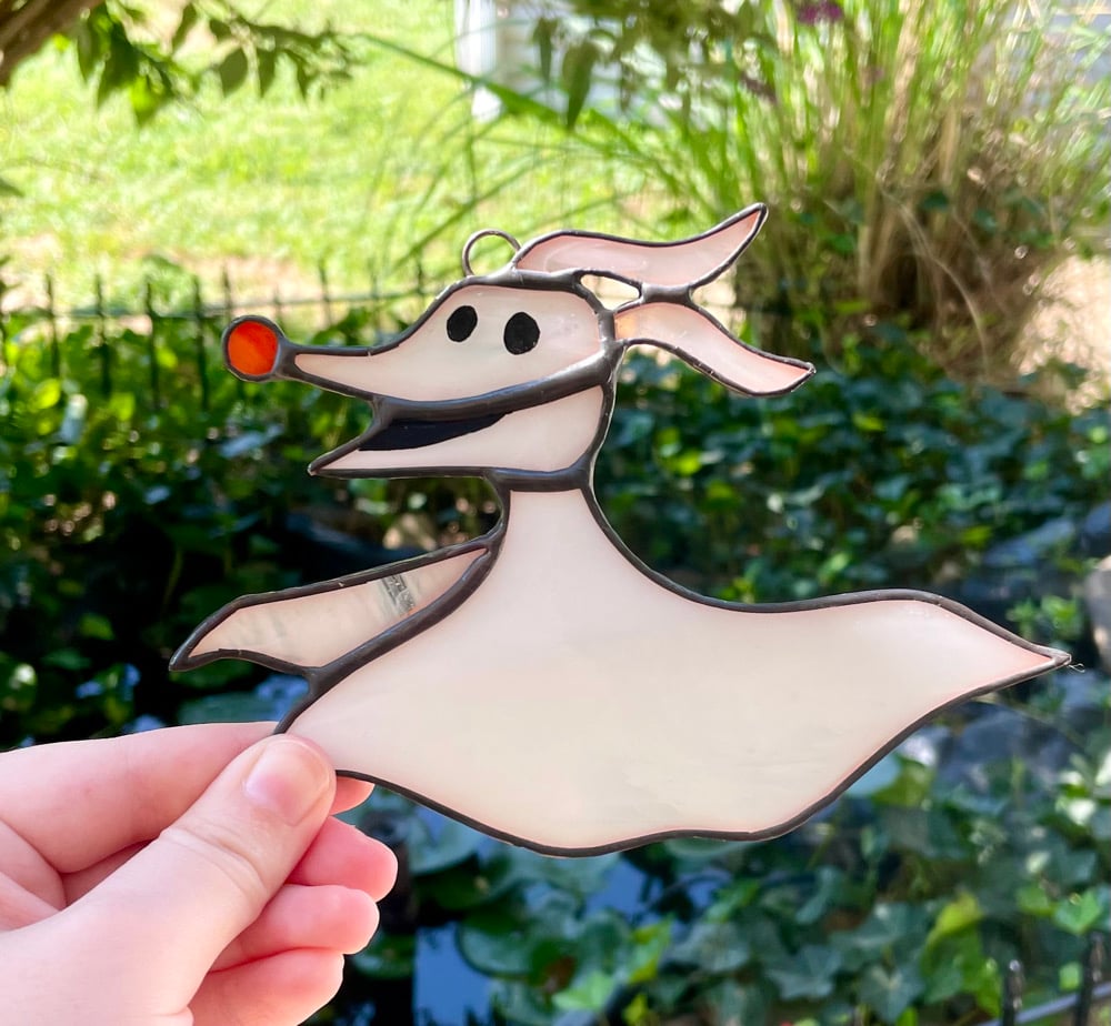 Created with gorgeous smokey white and orange stained glass and finished with black solder and glass paint for detail.